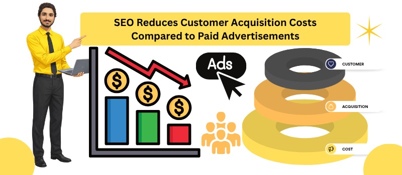 SEO dramatically reduces customer acquisition costs by 40-60% compared to paid advertising. Organic traffic continues to deliver leads and sales long after the initial investment, unlike paid ads which stop generating results as soon as the budget runs out. By focusing on sustainable SEO strategies, you ensure a steady stream of high-intent customers without the constant drain on your marketing budget.